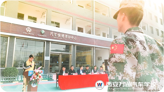 溫暖的陽光驅散著初冬的絲絲寒意,西安萬通汽車學校在2018年11月9日舉行秋冬季軍訓匯演。西安萬通校區李主任、創就業指導中心魏主任、督察處王主任、陜西陸軍預備役高炮師劉浩生團長等領導嘉賓出席了此次軍訓匯演。