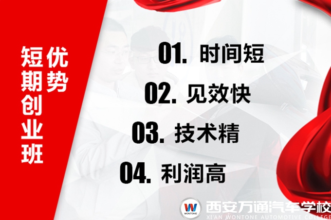 來西安萬通汽車學校汽車美容創業班,2.5個月擁有汽車美容創業技能,創業開店全程扶持。
