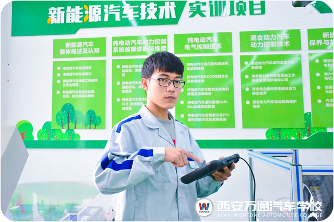 入學后,衛坤山在專業教學老師的耐心指導下,從新能源汽車技術的基礎學起,雖然有些知識點不太好掌握,但通過向老師請教以及與同學交流,也是會讓他覺得柳暗花明。他帶著自信的笑容說在西安萬通自己一定會掌握好新能源汽車技術!