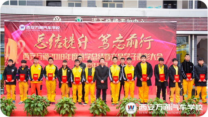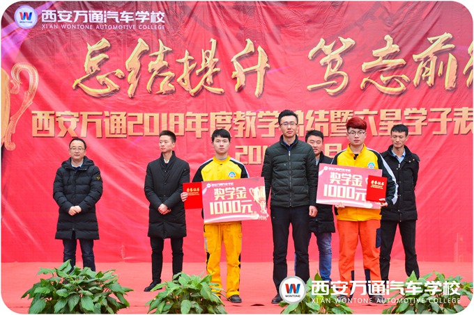 在過去的一年里,西安萬通在發展,萬通的學子也有著很大的進步,在學習中就涌現出一批優秀的學子。在激動人心的曲樂中,西安萬通2018汽車技能大賽、新生趣味技能大賽以及年度“六星學子”的獲獎名單一個一個被公示出來,獲獎學子也都收到校領導的頒獎與祝賀。