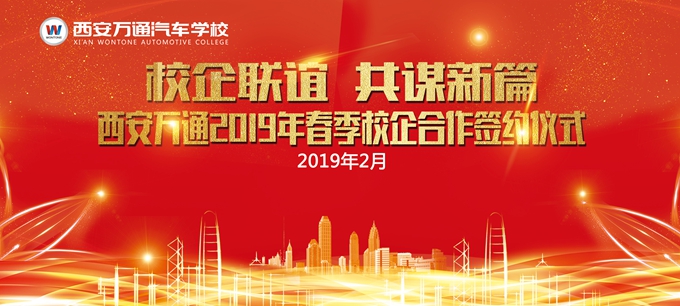 西安萬通汽車學校2019年春季校企合作簽約儀式將于正月初十(2月14日)盛大舉行,來自陜西省以及其它地區的數十家汽車服務連鎖、一站式汽車服務企業、品牌汽車4S店等企業,將于此日與西安萬通簽訂校企合作協議,共同培養汽車后服務市場專業技能人才。