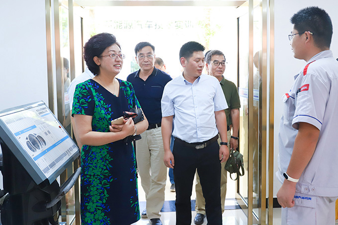 在方校長一行的陪同下,馮局長先后視察了校企奔寶奧實訓中心、新能源汽車技術實訓群、高端整車技術實訓群、機電檢測技術群、汽車鈑金噴涂美容技術實訓群、理實一體化實訓群,汽車綜合服務實訓群等。
