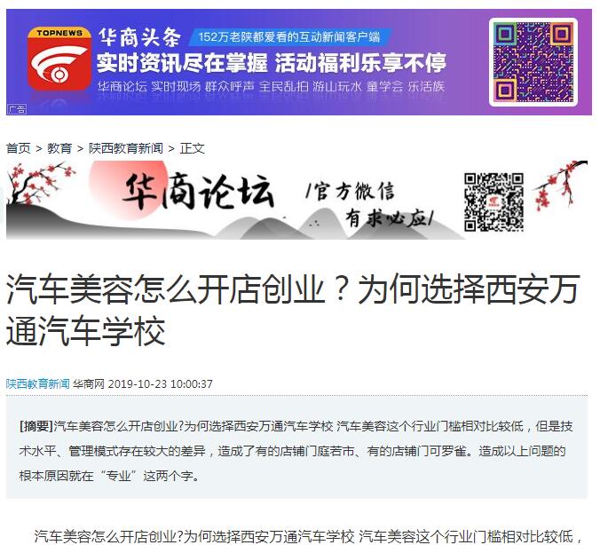 【華商網】汽車美容怎么開店創業?為何選擇西安萬通汽車學校