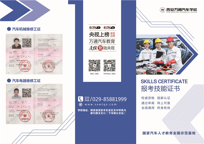 西安萬通汽車學校專業從事汽車教育32年,設有專門的考試、考證服務部門,專業指導在校學生和社會人員進行汽車相關資格證書考試,熟悉職業證書考試中的各種題型和實操內容,通過率高,拿證快,還能助你在汽車行業成就更光明的前途和錢途。