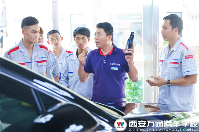 走近大師:張老師曾開創性地建立了各種轎車的內外裝飾、電器改裝獨特方案在,結合實際案例在課堂上從各方面給學生解析各種汽車美容改裝技巧,使學生在畢業后將專業知識真正派上用場,做到學有所用。他所教授的學子,除了成功就業的以外,都選擇創業,經過張老師的創業指導與幫扶,成功創業并良性運營的學子多達四十余人。自到西安萬通執教以來,致力于汽車美容裝潢教學工作,立志將西安萬通汽車美容及改裝專業打造成西北汽車學校的NO.1。