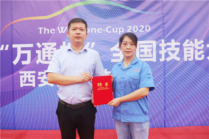 接著,西安萬通汽車學校校長助理爨助代表我校,向哈貝卡企業李經理頒發了企業裁判證書,希望企業裁判們能以企業標準嚴格要求學生,更大程度的保證大賽的高水準和人才的高品質。