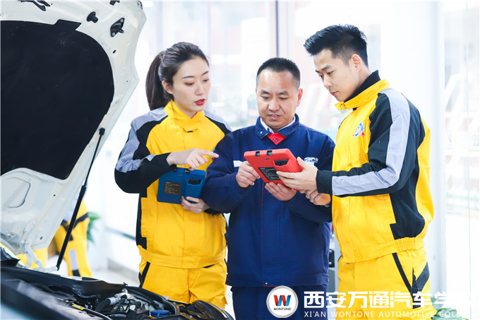 西安萬通的汽車設計和應用教學不僅擁有齊全的設備配置,如發動機TSI技術、變聲器DSG技術、自動駐車、全景泊車、無線藍牙通訊、新能源技術、車輛行駛穩定系統等,還不斷引進和采用了新技術。在維修教學方面使用了最新互聯網、云技術,如元征的無線解碼器和遠程診斷系統、精致修復、鍍膜、高級改裝等。這些新技術,不僅提高了汽車維修效率,還改變了行業的維修模式。