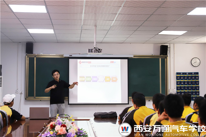 徐總對企業的概況、招聘崗位以及員工薪資構成進行詳細的介紹,隨后講到,從企業乃至整個汽車產業的從業人員現狀來看,中高級技術人才非常短缺,“高級藍領”已成為稀缺人才,汽車行業巨大的人才缺口也促使汽車專業將成為未來十年前景最好的專業之一。企業為了省心省力地招聘到“心儀”的人才,自然要與像西安萬通一樣品牌實力強、學生素質高的職業院校的合作。最后,徐總鼓勵萬通學子們如果有心儀的崗位一定要努力爭取,作為企業方非常希望吸納更多掌握先進技術的新生力量。