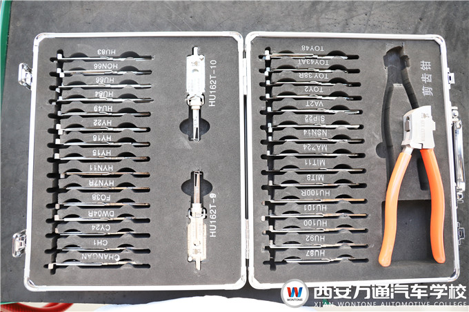 西安萬通汽車學校汽車配鑰匙專業從汽車鎖具基礎課程、汽車鑰匙開齒工具講解及使用、汽車遙控器講解以及生成、萬用表測量實踐、烙鐵、風槍認知及應用、五大車系防盜匹配六個方面建成課程體系。五大車系真車實訓,行業大師手把手教學,包教包會。