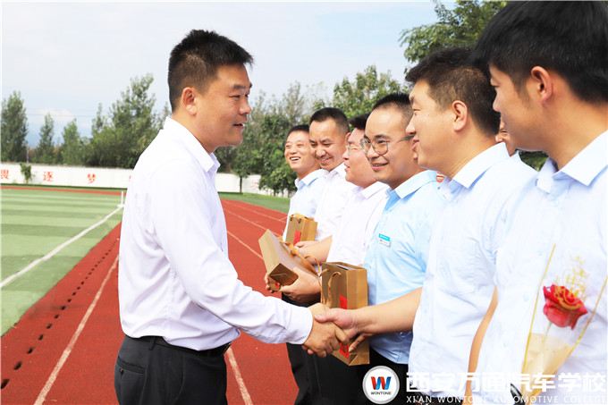 西安萬通汽車學校韓校長和校長助理爨助也給每位老師送出了誠摯的節日祝福,不僅慰問了全體教職人員還贈予他們教師節的禮品和鮮花,感謝老師們一直以來的辛苦努力和付出。老師們紛紛表示,感謝領導們的關心和慰問,看到一批批學子們成才是最幸福的事,未來必將不忘初心,砥礪前行!