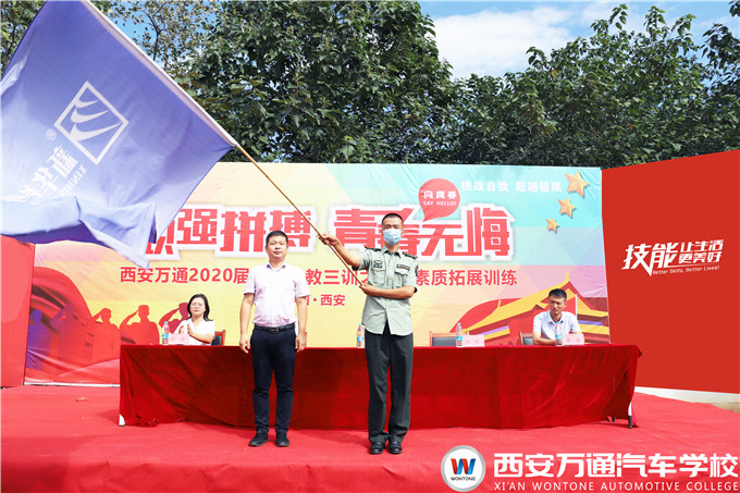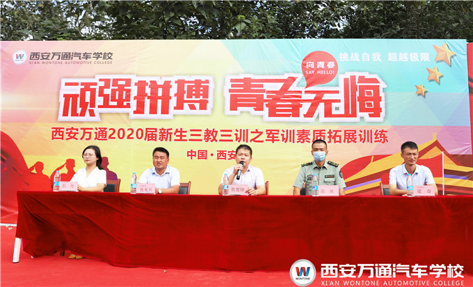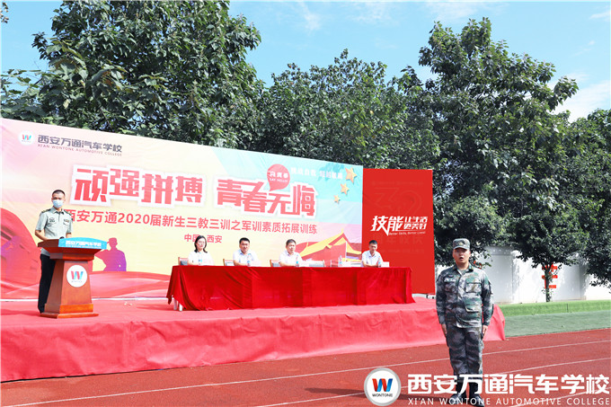 在激揚的國歌聲中,西安萬通汽車學校2020屆新生三教三訓之軍訓素質拓展訓練正式啟動。各連連長分別帶領新生作了軍訓風采展示,新生們嘹亮的口號,整齊劃一的步伐受到領導們的一致贊揚。