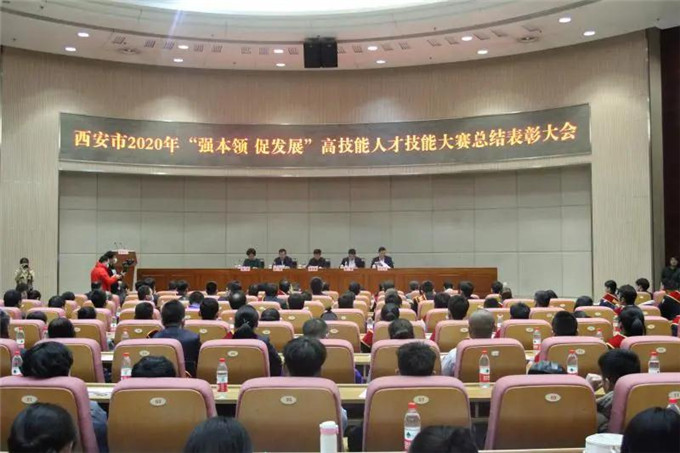 2020年11月3日,2020年“強本領、促發展”高技能人才技能大賽總結表彰大會在西安召開。西安市政府副秘書長樊軍榮、市總工會常務副主席王軍、市委組織部部務委員張凱、市人社局副局長馮立文、二級巡視員馮莉等領導及市委組織部、市人社局、市總工會相關部門,各區縣、產業、開發區人社局、工會負責人,受表彰的技能大賽技術標兵、技術能手、優秀組織單位、優秀個人,以及承辦單位、參賽企業干部職工代表230余人參加大會。