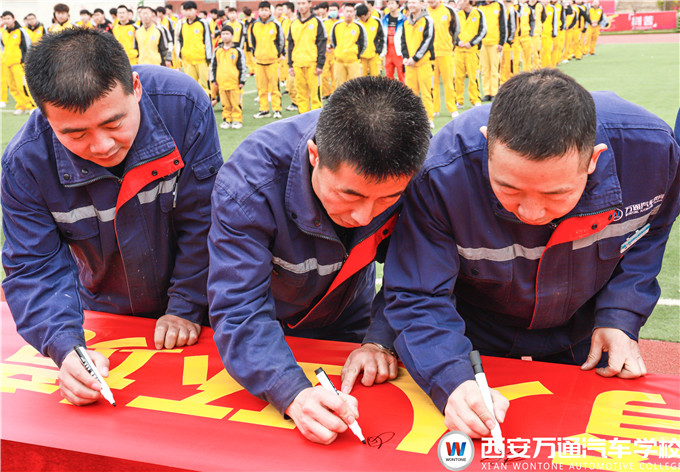 校長助理鄭助對本次活動做了總結性發言,希望希望同學們積極參與此次教學質量季活動,不斷進步,依靠在萬通學到的技術創造屬于自己的美好未來,并宣布本次教學質量季正式啟動。啟動儀式上,教師代表、班級學生代表還在西安萬通2021教學質量季展板上簽字,許下“狠抓教學質量不忘教育初心”的鄭重承諾。