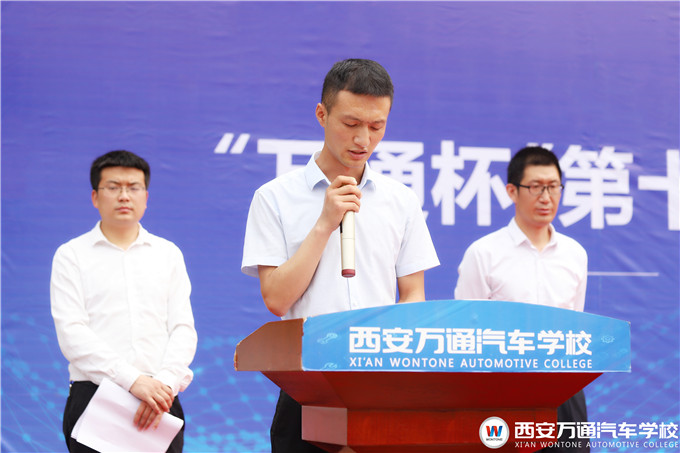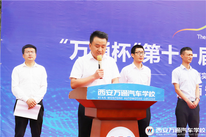 西安萬通韓校長就本次比賽作了重要講話。他提出,一年一度的“萬通杯”汽車技能大賽不僅能夠檢驗同學們的技能學習成果,也能在全社會弘揚勞動光榮、技能寶貴、創造未來的時代風尚。希望每一位選手都能從這次大賽中,不斷地總結自己、提升自己,在賽場上賽出風格、賽出水平,展現新時代技能人才的卓越風采!