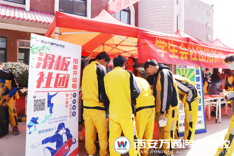 “同學,你要不要參加輪滑社,來,看一下我們的宣傳頁吧。我們社團……”3月8日中午,西安萬通汽車學校2022年新學期的學生會納新和社團納新活動開始了,吸引眾多同學紛紛前來觀看咨詢,場面異常熱鬧。
