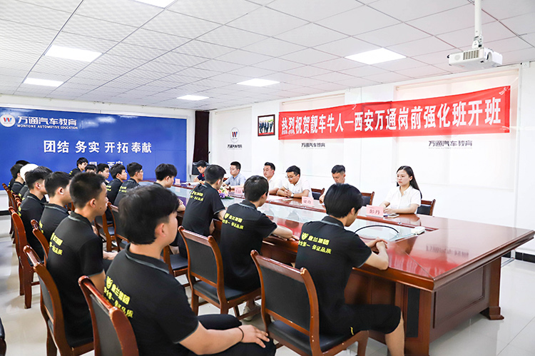 為了進一步強化畢業生崗前學習意識,提升畢業生上崗后的各項素質能力,6月17日,由西安萬通汽車學校和靚車牛人汽車美容連鎖共建的2022年校企崗前強化培訓班順利舉行。參加此次開班典禮的校領導分別是學生處主任張見兵、教務處主任梁奇、創就業指導中心主管彭丹、學生處組長萬云飛,蒞臨典禮的嘉賓有靚車牛人汽車美容連鎖候經理和培訓主任盧主任。