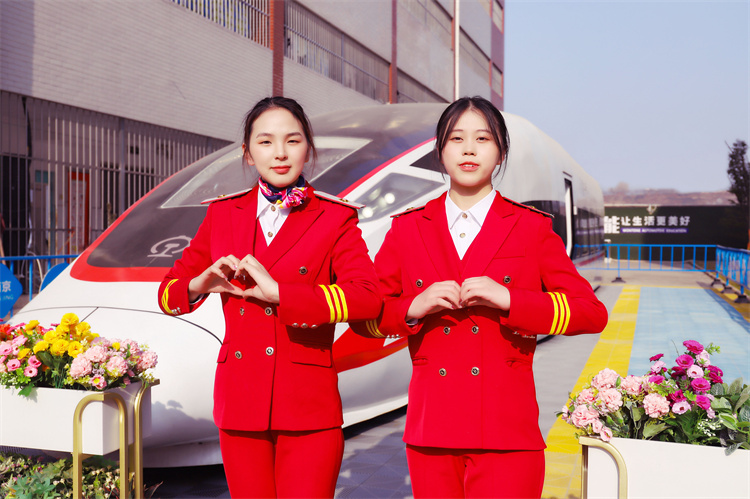 01 動車組、高鐵車廂乘務員 在動車、高鐵上負責引導、核對車票,為旅客提供服務。工作時,統一著車廂乘務員鐵路服裝。