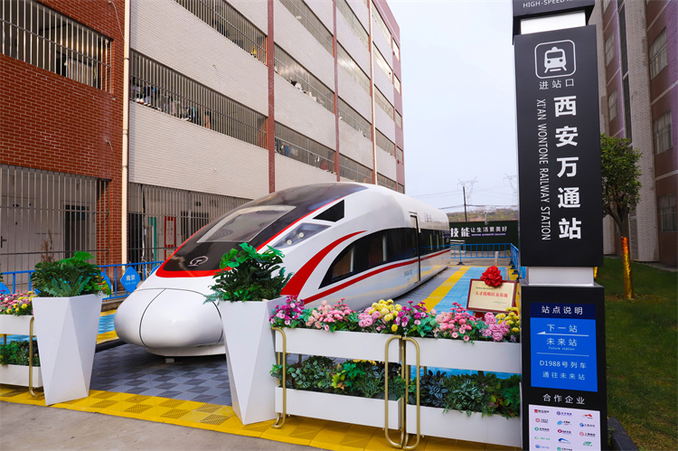 西安萬通不斷加強、完善軌道交通專業實訓室建設,鋪設真實軌道、引進各類列車車廂,學生可以在日常學習中體驗真實工作場景。