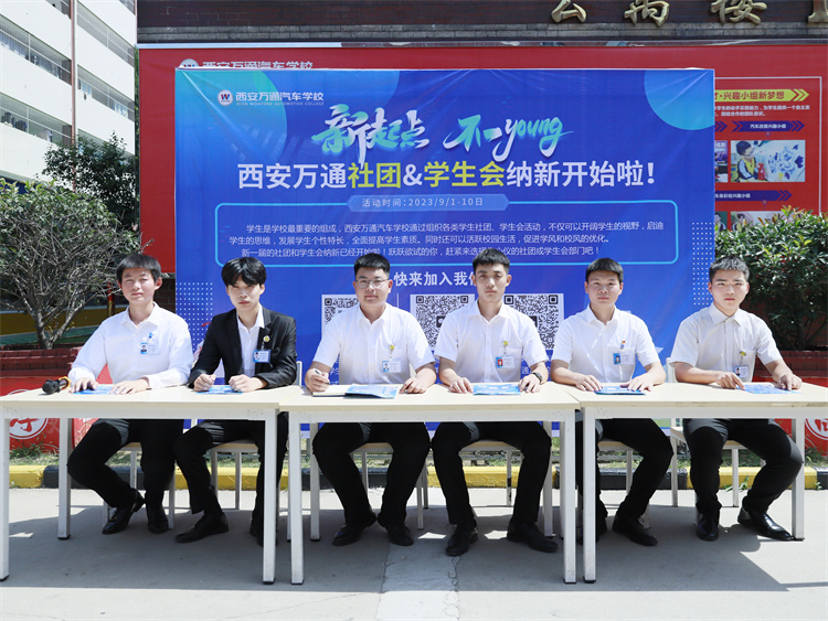 “同學,你要不要參加新媒體社團,來,看一下我們的宣傳頁吧。我們社團……”近日,西安萬通汽車學校2023年秋季新學期的學生會納新和社團納新活動開始了,吸引眾多同學紛紛前來觀看咨詢,場面異常熱鬧。