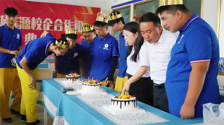 最令人期待的環節莫過于校企領導與學生們共同點燃開班蠟燭、分享開班蛋糕的時刻。燭光搖曳中,不僅映照出學子們燦爛的笑臉,更寓意著新能源校企合作班的美好未來。蛋糕的甜蜜,象征著師生間的深厚情誼,也預示著同學們在學業和職業生涯中將收獲滿滿的成就與幸福。