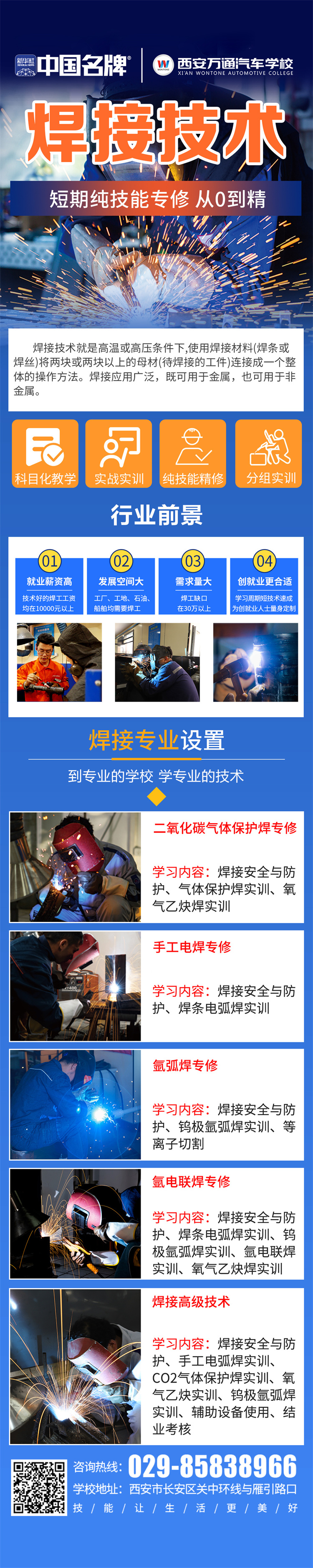 學校靠譜 鑒于焊接專業近幾年的高就業率,很多學校也陸續開辦焊接專業。西安萬通開設焊接技術專業,學校品牌辦學經驗近40年,品牌口碑經過市場檢驗。