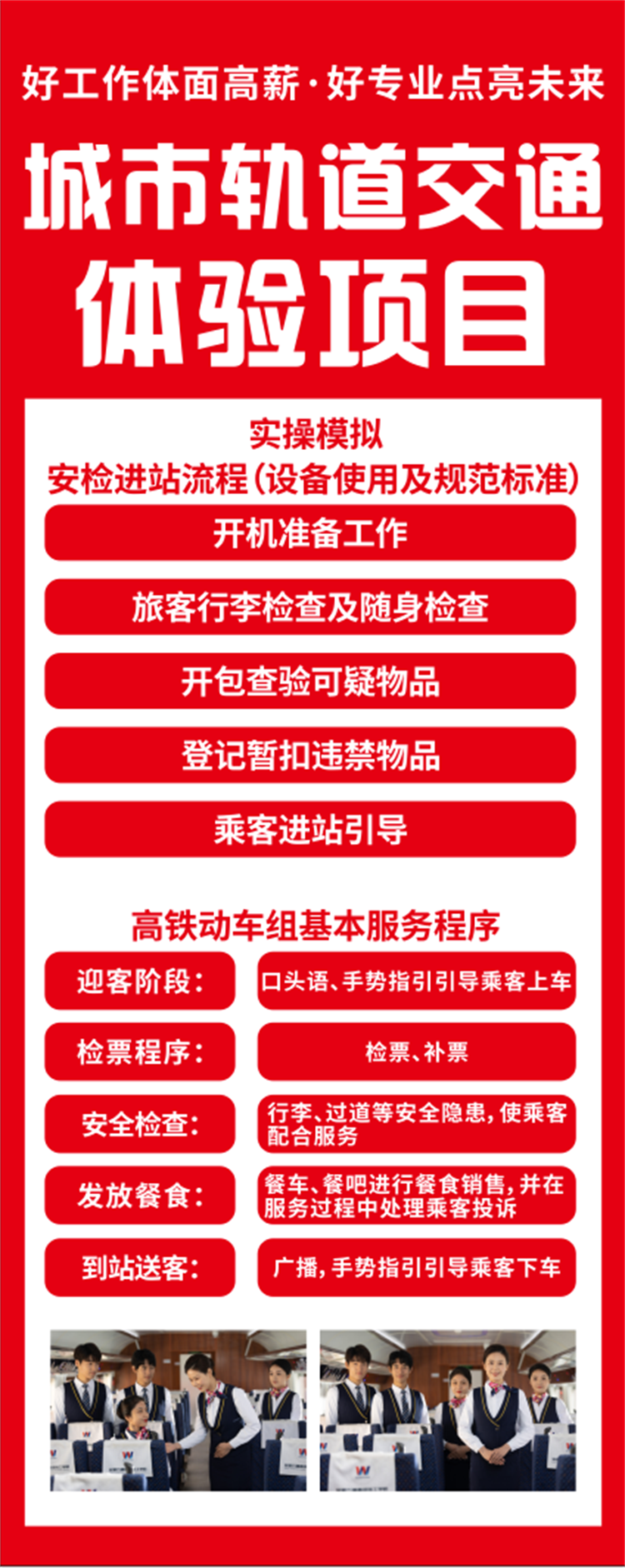城市軌道交通體驗項目 女孩子想要學一門好就業的技術,首選一定是軌道交通。行業工資高,并且很受人尊重,沒有航空輻射,就業年齡長!占據了多重優點。 家里有女孩的家長,一定要帶孩子來體驗一下。