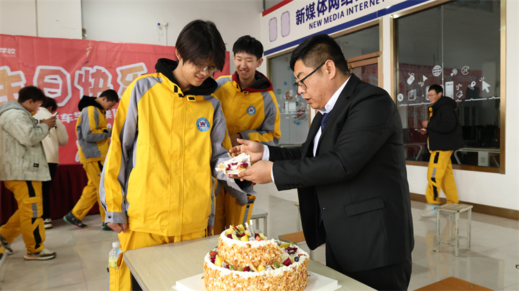 最后,班主任金曉龍老師親自為同學們切開了生日蛋糕,并將蛋糕分發給每一位同學。香甜的蛋糕,燦爛的笑容,真摯的祝福,交織成一幅溫馨動人的畫面,為本次生日會畫上了圓滿的句號。