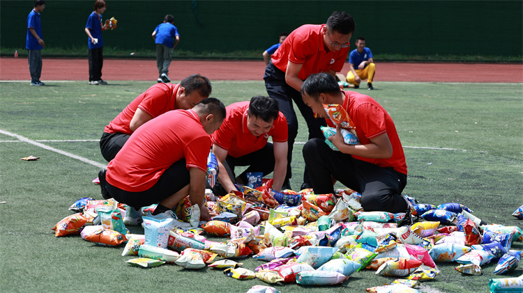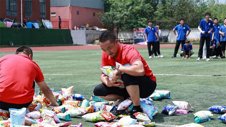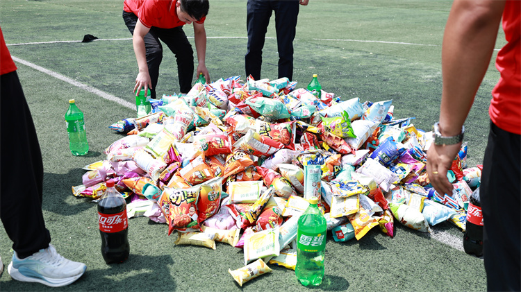 趣味開賽,歡樂無限 比賽當天,學校在操場上精心布置了各式各樣的零食和飲料,琳瑯滿目的美食瞬間點燃了學生們的熱情。隨著一聲令下,參賽學生們如離弦之箭沖向零食區,有的身手敏捷,迅速“搶占”目標;有的團隊協作,互相配合“圍剿”零食;還有的另辟蹊徑,以智取勝。老師們在一旁加油助威,吶喊聲、歡笑聲此起彼伏,現場氣氛熱烈非凡。