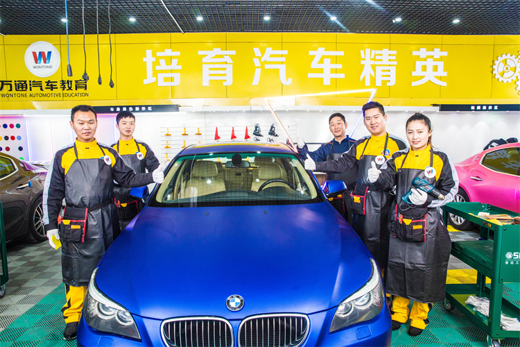 02  實訓設備:齊全的設施設備,才能讓學生學到貼近市場的汽車美容技術。西安萬通汽車學校攜手企業,不定期引進市場上用的設施設備與實訓車,以滿足實踐教學所需。