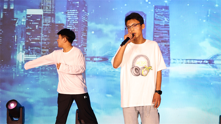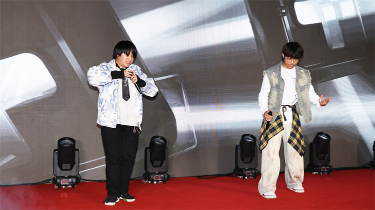 二、 節目紛呈,盡顯青春風華 本次晚會節目形式多樣,內容豐富多彩,充分展現了西安萬通學子多才多藝、全面發展的精神風貌。 舞臺上有青春的吶喊與激情。新能源2501班帶來的創意舞蹈《洗牌》 ,以新穎的編排和富有張力的表演,展現了年輕一代的無限創意;VIP2501班的《架子鼓》表演,節奏鏗鏘,鼓點如雨,奏響了青春的豪邁與不羈;而霹靂舞表演者帶來的《霹靂舞》 ,更是以高難度的動作和即興的爆發力,將力量與柔韌完美結合,引來全場陣陣驚呼。