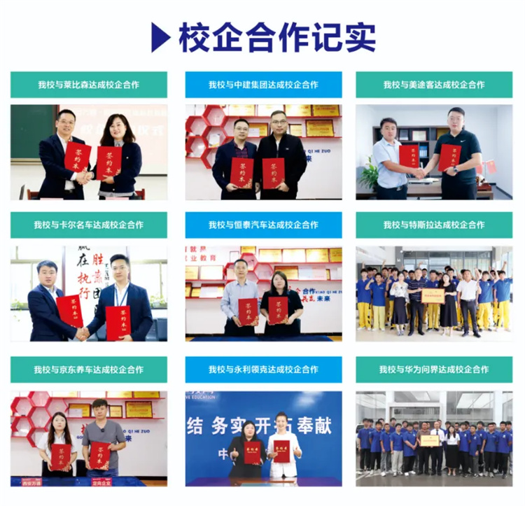 看未來 我校與眾多行業名企達成人才合作,共同開設校企合作班、邀請企業技術人員進校開展講座、定期舉辦各類校園招聘會等等,保障學子在校期間與企業常態化交流。